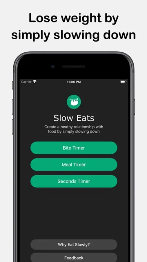Slow Eats is a timer app that helps you slow down and stay mindful during eating to create a healthier relationship with food and ultimately lose weight. Its simplicity in function and design makes it straightforward to use and incredibly effective.