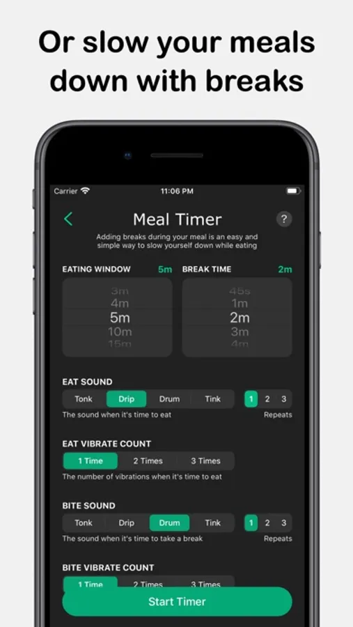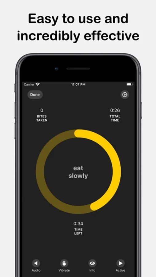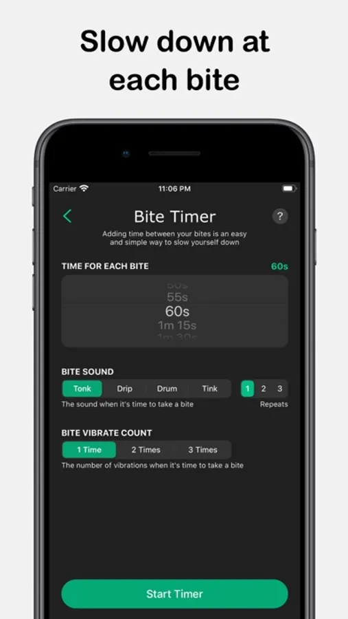 ● Bite Timer: Slow down how fast you eat by creating a set pause between each bite.