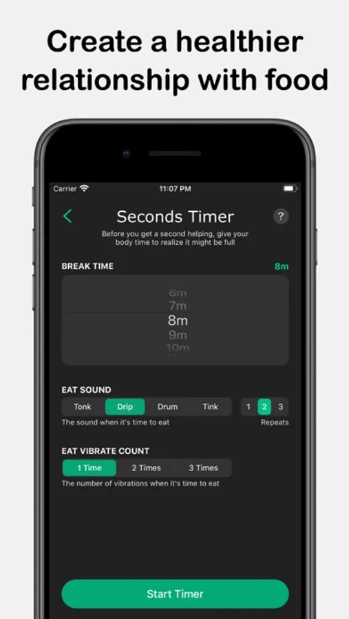 ● Seconds Timer: Create a mindful pause before you get more. Give yourself time to feel full before deciding you need more.