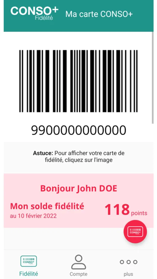 L'application CONSO+ Fidélité vous permet de consulter vos informations personnelles, vos points.