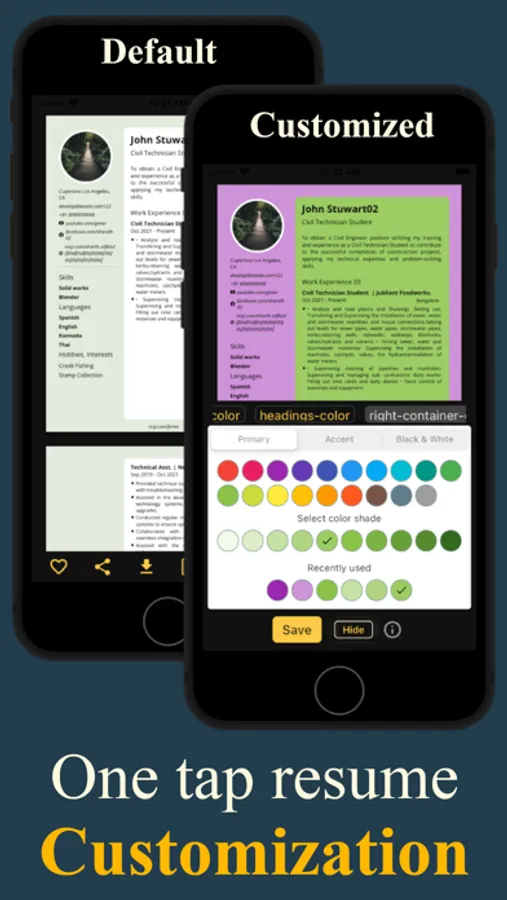 Type your resume details once and see the magic of our app, which generates the resume in many formats (both PDF & web) suitable to every recruiter.