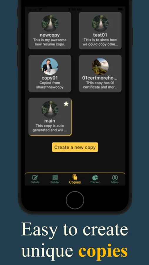- Create resume copies/duplicates and customize them individually to suit a particular job.