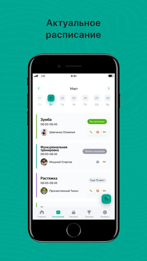 Посмотреть актуальное расписание тренировок;