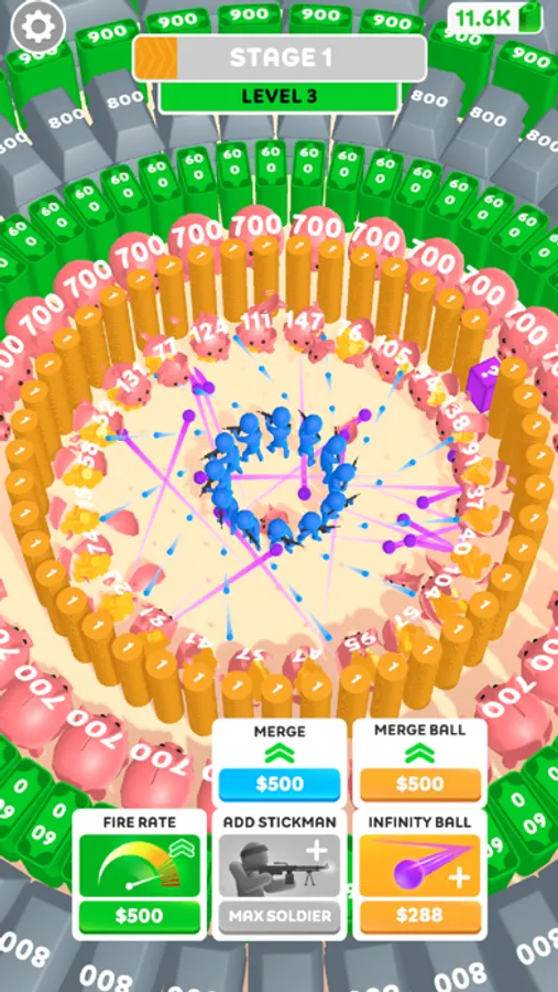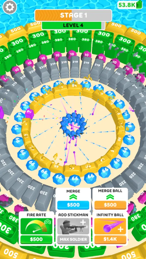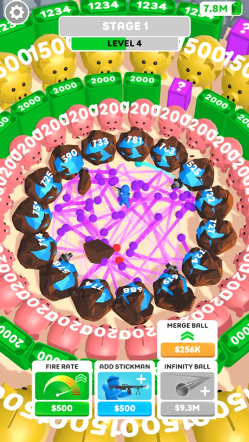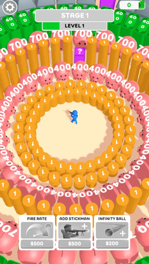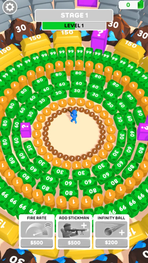 Power up your weapon and earn coins as you shoot blocks. Clicking speeds up your firing and earns more money.