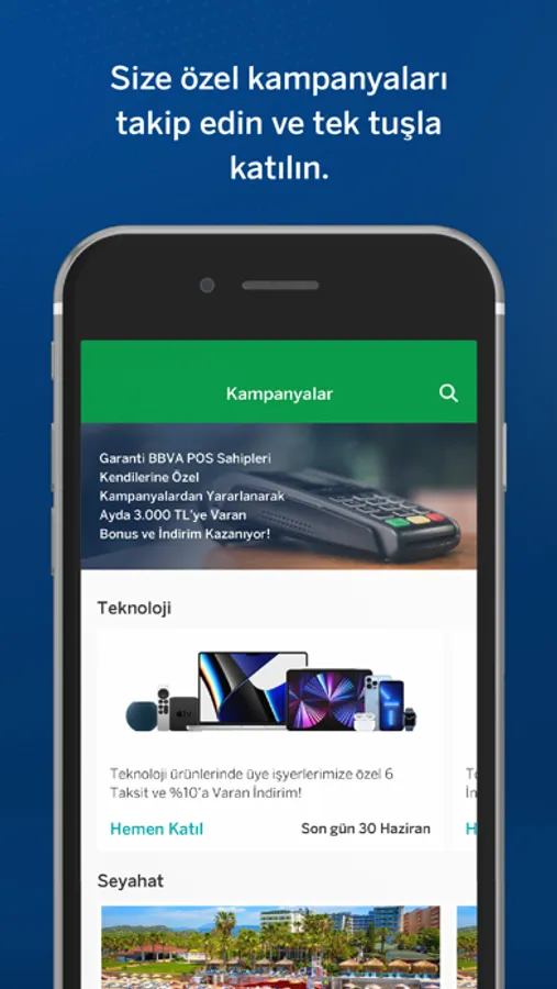 Size özel hazırlanmış kampanyalardan haberdar olabilir ve tek tuşla kampanyalara katılabilir ve katıldığınız kampanyaları takip edebilirsiniz.