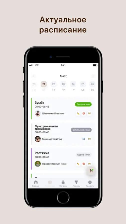 Посмотреть актуальное расписание тренировок;