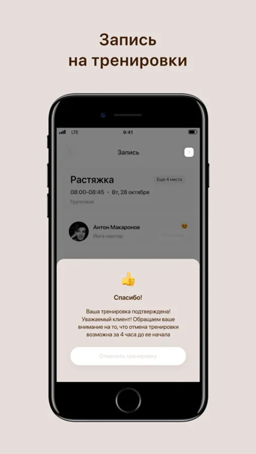 Получать PUSH-уведомления о предстоящей тренировке за 3 часа;