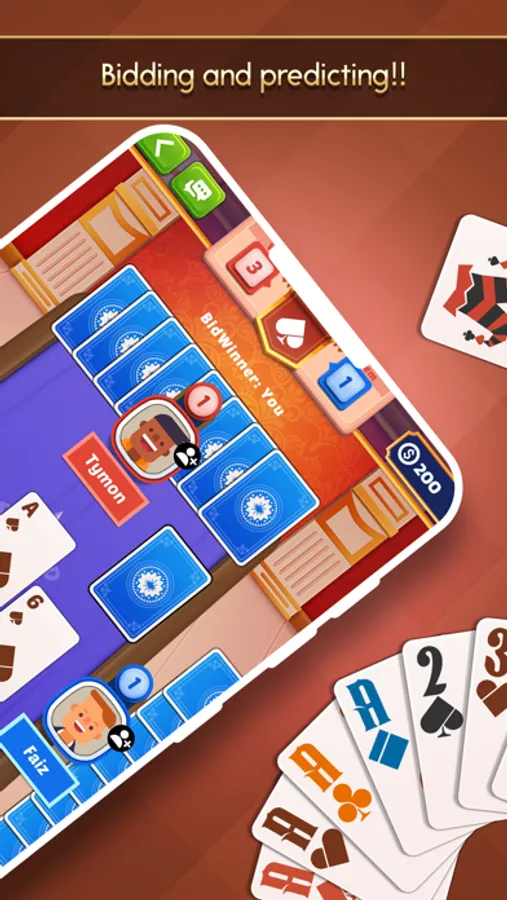 Bid Whist offers you a great experience against many Bid Whist players from all around the world! You can play in different game modes.