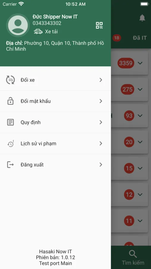 Ứng dụng dành cho Shipper bao gồm những chức năng cơ bản: