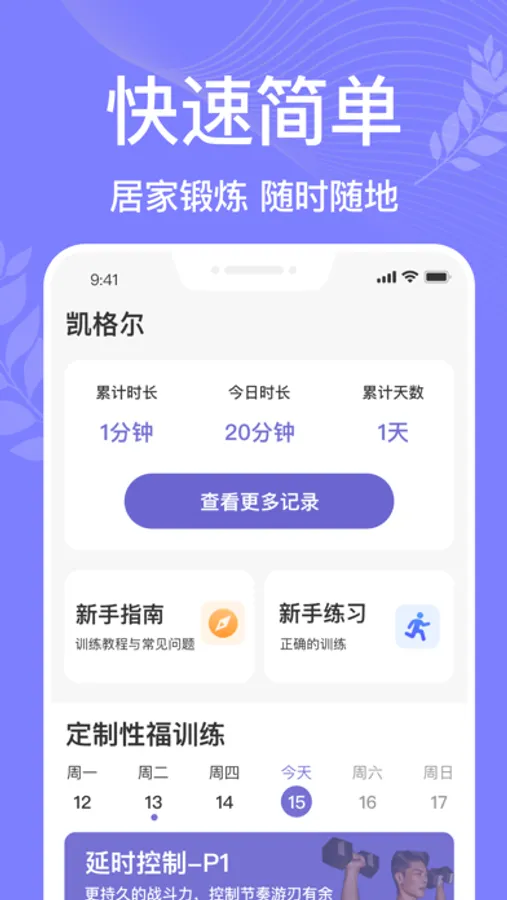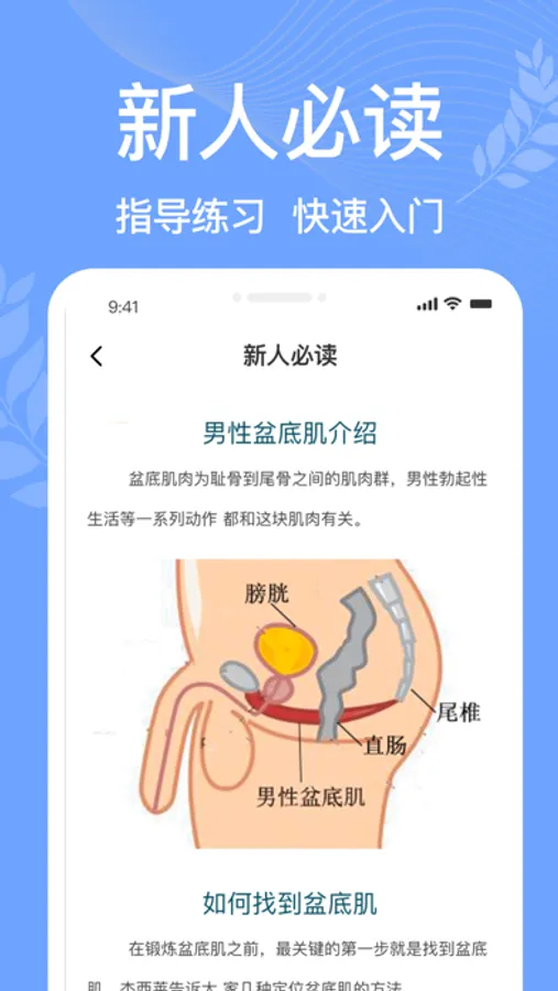 【凯格尔运动】针对性训练盆底肌的专业课程,帮助使用者更好的强化盆腔肌肉群,改善男女性健康,快速简单,在家就可以学习锻炼啦。