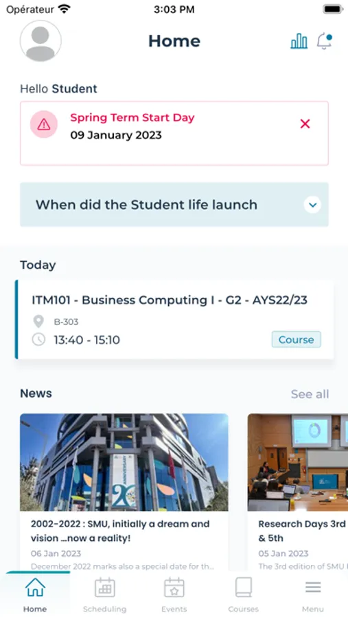 Delivering an impactful student experience is our priority, SMU app solution helps our students engage, succeed, and get the most out of their time at the school. The mobile app provides access to services, resources, and opportunities tailored to their wants and needs, within a delightful, intuitive interface.