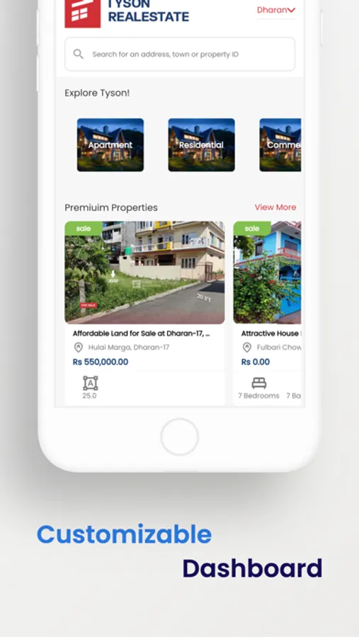 Tyson Real Estate is, a proptech company, located at Dharan, Nepal serving the society in an innovative way since Mangsir 15, 2077. It is a real estate agency devoted to consistently providing high customer service of buying, selling and renting homes and properties, combined with a relaxing office atmosphere and excellent customer service. Tyson RealEstate as a marketing platform will serve everyone to simplify the real RealEstate scenario - removing the concept of commission our valuable customers pay to the brokers. We are here trying to make everyone’s’ life easier.