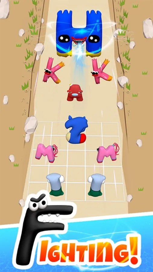 Alphabet are roaming the battlefield and killing citizens, It is your time to defend the kingdom using your fusion power to merge Alphabet, dragons, giants, warriors,...Use strategy to combine archers and warriors, upgrade their power and fight against enemies, control your army and merge wisely to kill rivals. Unlock new and more powerful creatures after conquering challenges and using the right combination. Use your finger to draw & grow soldiers to evolve them. Match the same units to merge them into a higher form. Grow, merge and battle huge collection of monsters! Prepare for war, fight your foes to die.