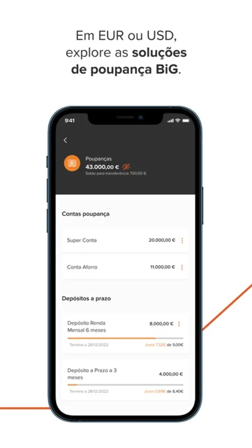 • Produtos de poupança e investimento – descubra uma oferta alargada de soluções de poupança (Super Conta, Conta Aforro e Depósitos a Prazo) e de investimento (Ações, Etp’s, Warrants e Certificados);