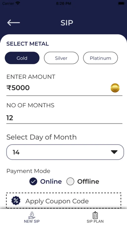 Customers can create an Monthly Saving Plan (SIP) in the App."