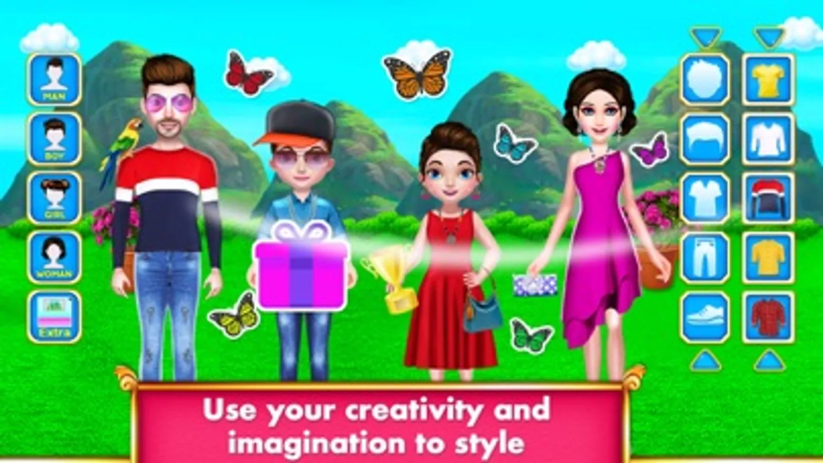 We bring four gorgeous designing of virtual models with dozens of apparel, accessories, makeup, funny stickers and more. Show off your fashionista talent to your friends and family online by sharing your creation on social media. Select background that suits the dressing style of the family.