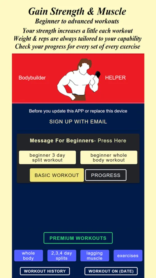 Bodybuilder HELPER keeps a comprehensive record of your progress through its workout and exercise history tracking features. This allows you to monitor your development over time, review previous workout details, and track your performance.