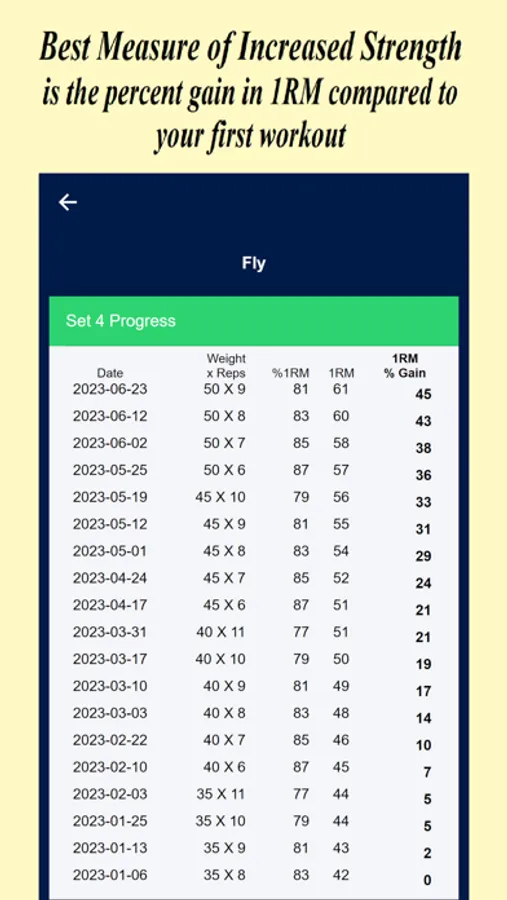 Bodybuilder HELPER implements a small incremental increase in your 1 Rep Maximum (1RM) weight goal after each workout. This method allows for a gradual yet steady increase in strength without putting excessive strain on your body. By utilizing this progressive overload approach, the app optimizes your gains while minimizing the risk of injury associated with abrupt changes in weight load.