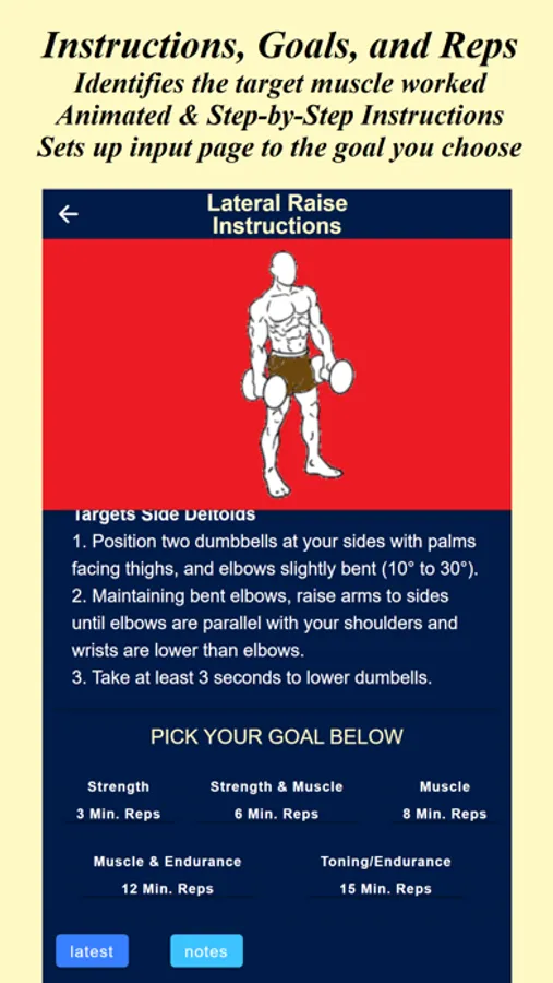 Bodybuilder HELPER caters to a variety of bodybuilding goals, offering five distinct workout options: Strength, Muscle, Strength & Muscle, Muscle & Endurance, and Toning & Endurance. Regardless of your objective, the app sets up each exercise within the ideal rep range to optimize your progress. This flexibility ensures that your workouts align with your specific goals and preferences.