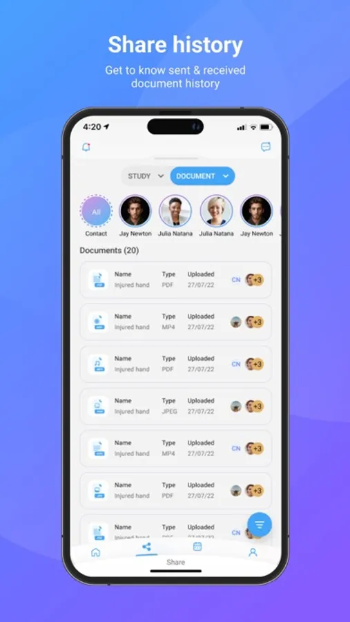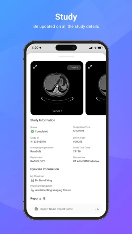 Keep track of all completed, scheduled, in progress, and cancelled studies as well as use automated filters to organize your content. Access information about the study, physicians involved, contacts the study has been shared with, study images, and study reports.