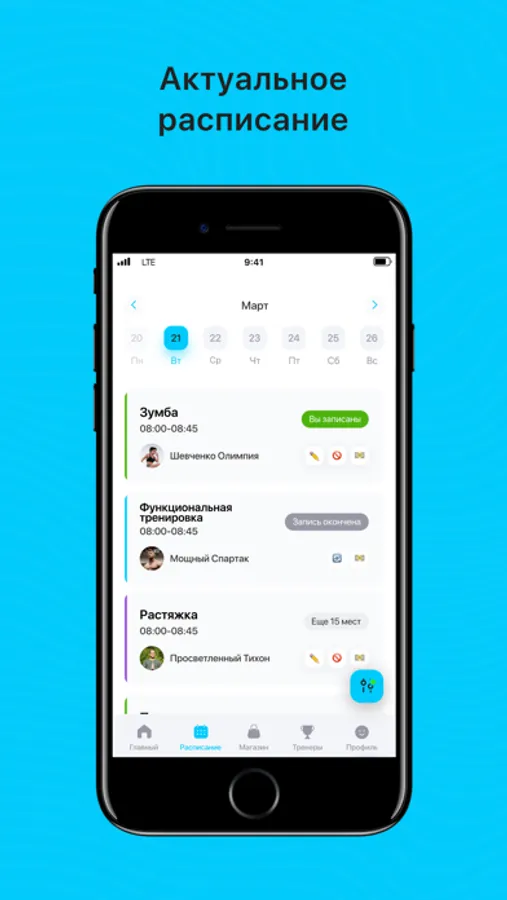 Посмотреть актуальное расписание тренировок;