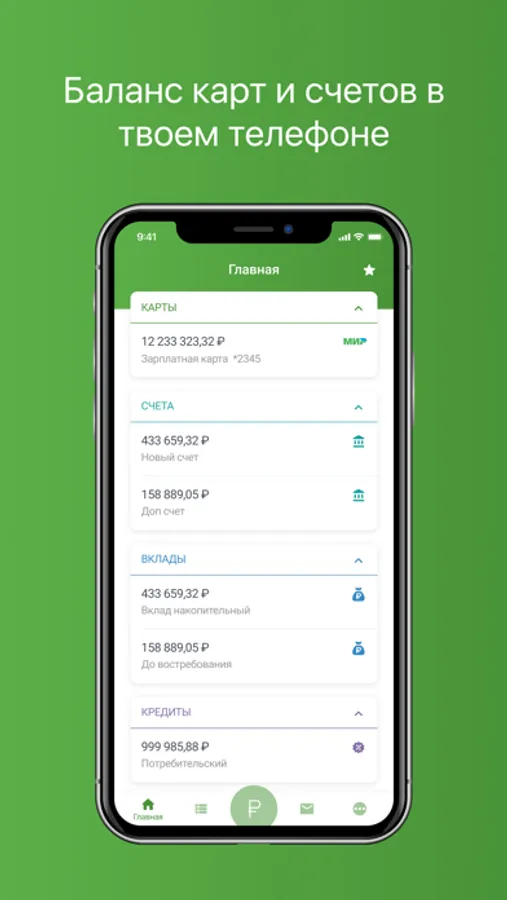 - узнать баланс и просмотреть актуальную информацию о движении средств по счетам и картам, вкладам, кредитам;