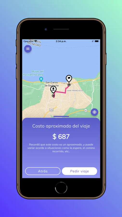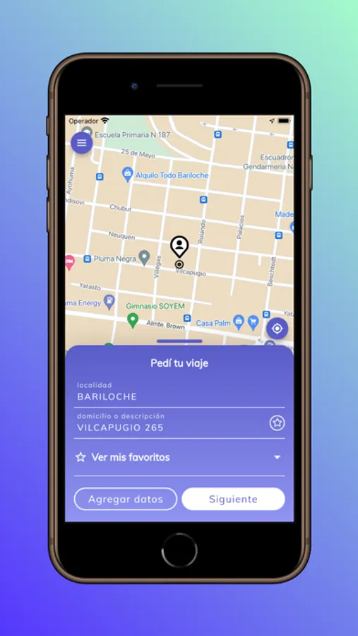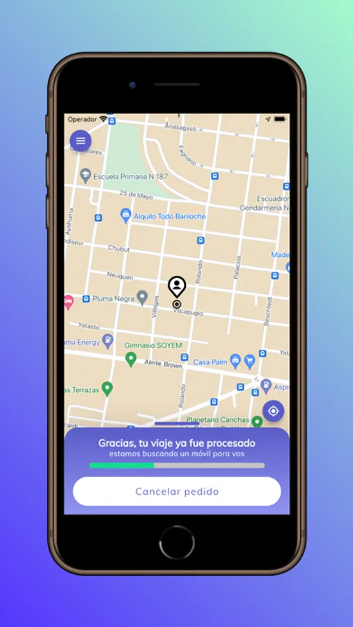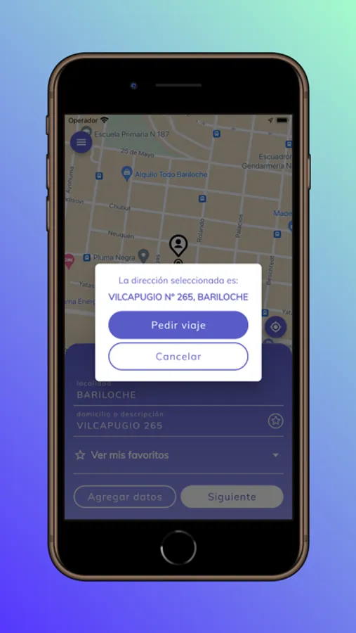 - Solicitud de viajes desde una ubicación elegida sobre un mapa o carga manual de calles.