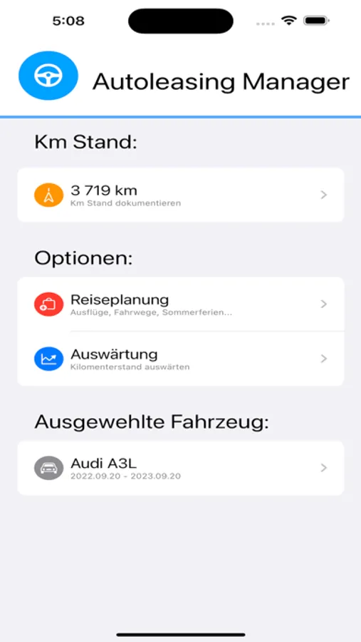 On the 1st of every month you will be asked to enter the mileage. After entering you can see immediately whether you are above or below the planned mileage. You can see how many trips you can still make in the current month and how many kilometers are left, excluding future trips.