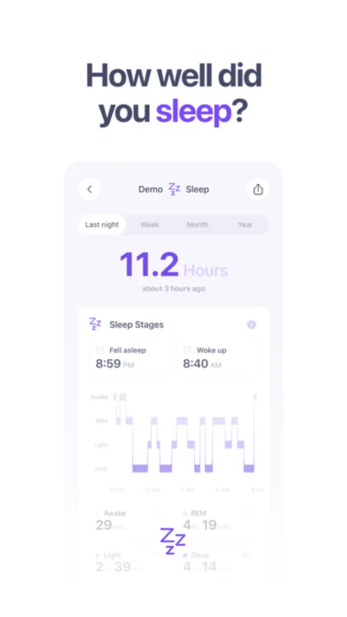 • Manage sleep and measure REM, light, and deep sleep cycles.