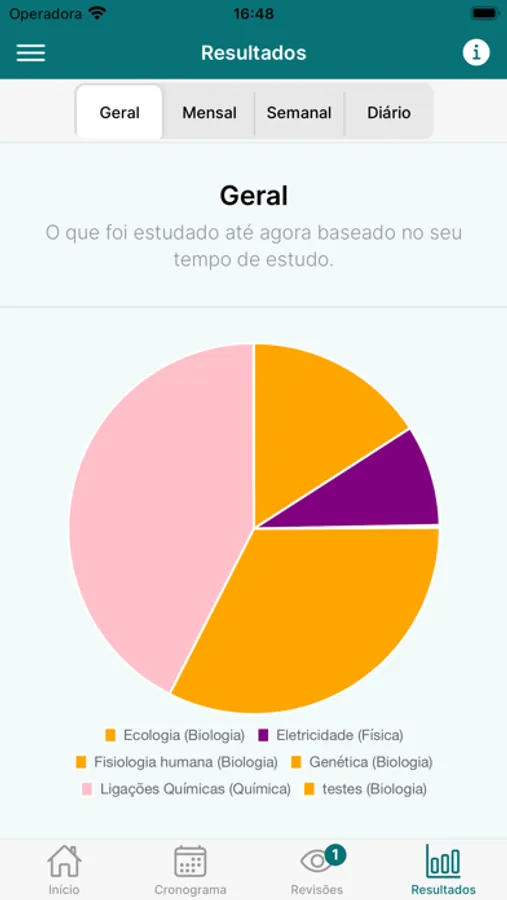 Nós calculamos precisamente todos os dados dos seus estudos e exibimos em forma de gráficos e texto o seu desempenho geral, mensal, semanal e diário.