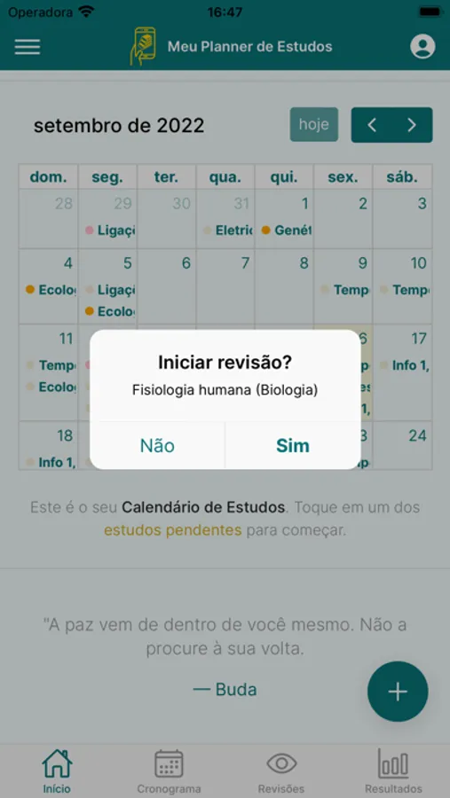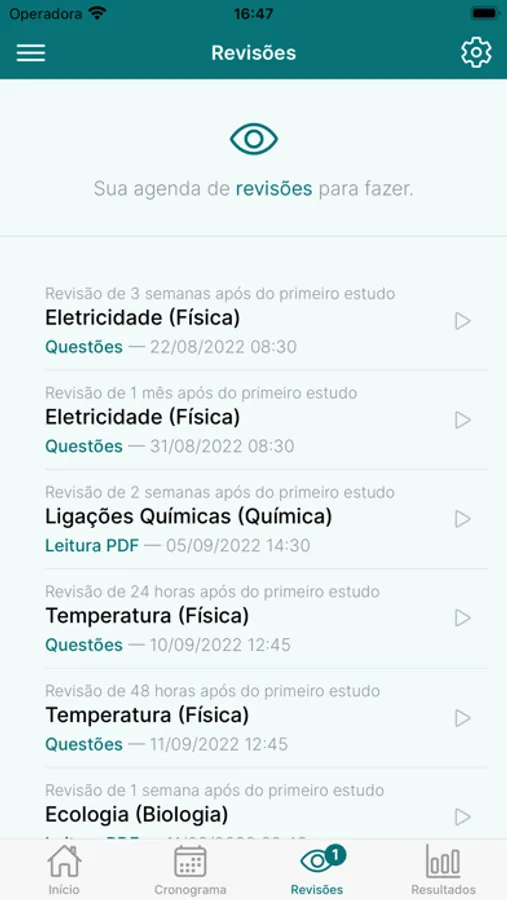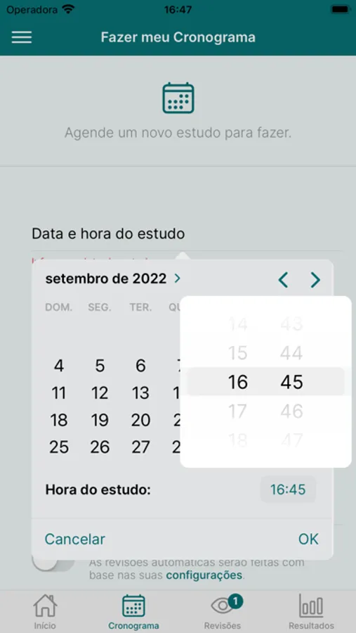 O app organiza automaticamente as revisões dos seus estudos de acordo com as configurações escolhidas por você.