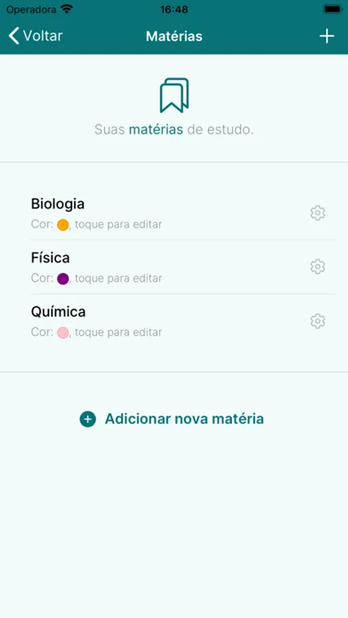 Crie e organize suas matérias de estudos manualmente sempre que quiser.