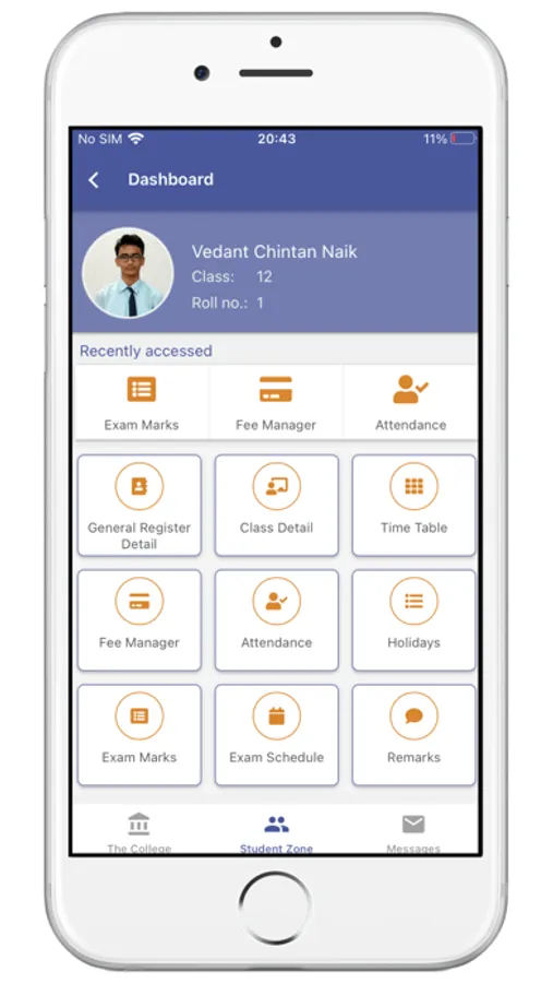 (2) Parent Zone - Parents can see their kid's personal records in this section. For example - General Register details, Time Table, Attendance, Exam Results, Fee Payment details, Home Work etc. Parents will have to register into the app using the same mobile number which is supplied for school General Register record.