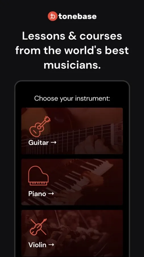 Our mission at tonebase is to democratize access to the highest-quality music education, allowing you to learn from and be inspired by the best. At the core of our platform, you'll find 1000s of lessons, courses, and interviews taught by 100+ world-class instructors including GRAMMY award-winners and teachers from top music schools.