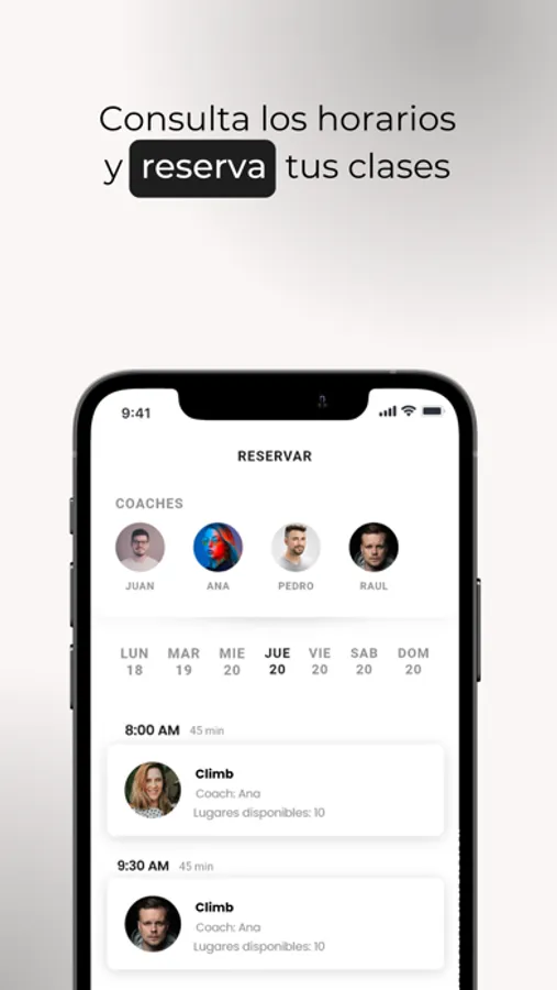 Conoce los horarios de tu estudio, reserva y compra fácilmente desde la app.