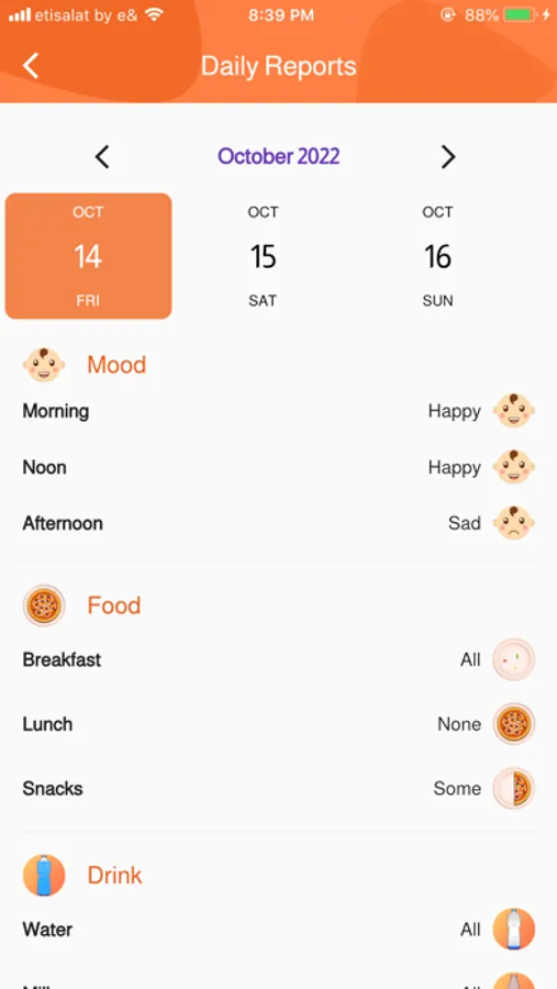 - Daily Reports: a report about kid's day at nursery (food, mood, activites, study, ...)