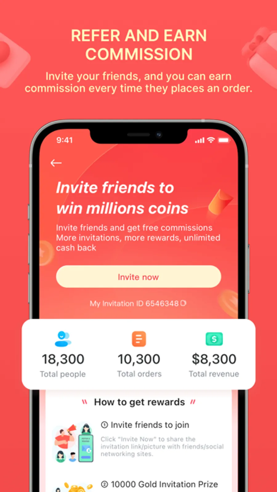 When your friend joins HiShop through your referral code, you can not only get additional rewards, but also get commission when your friend makes a purchase through HiShop.