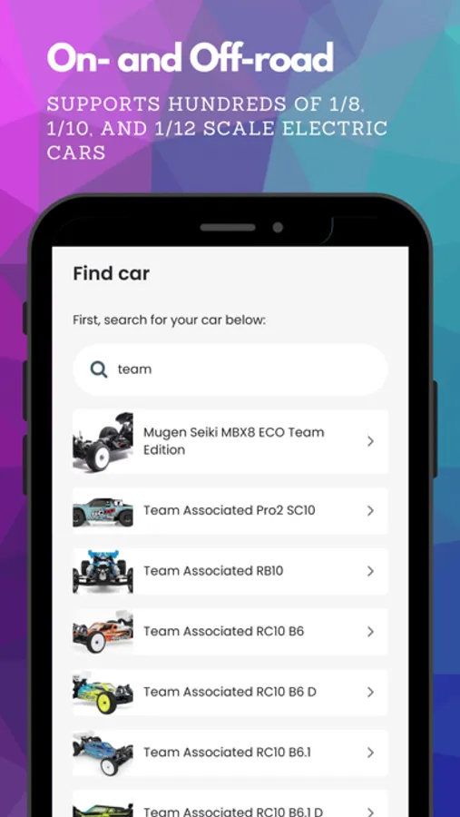 - Electric cars and trucks, 1/8, 1/10, and 1/12 scale