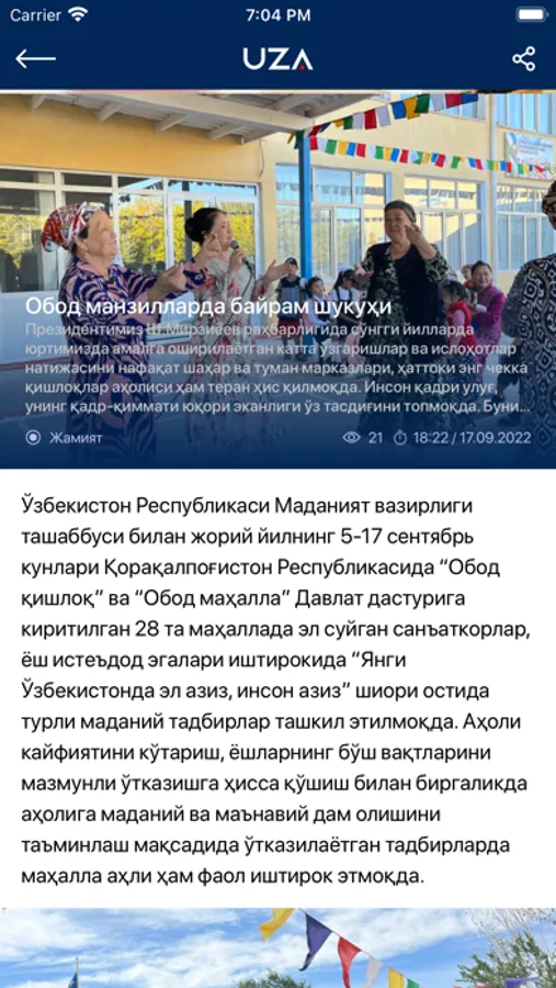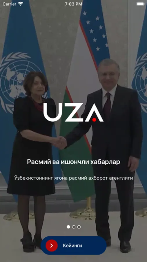 O‘zbekiston Milliy axborot agentligi davlatning yagona rasmiy axborot agentligidir. O‘zA orqali siz rasmiy xabarlar, Prezidentning farmon va qarorlari, Hukumat hujjatlari, O‘zbekiston va jahonda bo‘layotgan tezkor yangiliklar, tanqidiy-tahliliy materiallarni o‘qishingiz mumkin.