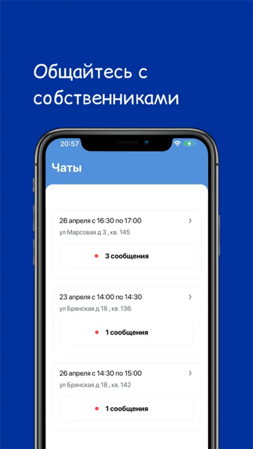 Приложение предназначено для работников управляющей компании Global Express. Воспользовавшись приложением, сотрудник имеет возможность оповещать диспетчера о выполнении заявок и создавать их самостоятельно, общаться в чате с собственниками, отслеживать свой рейтинг.