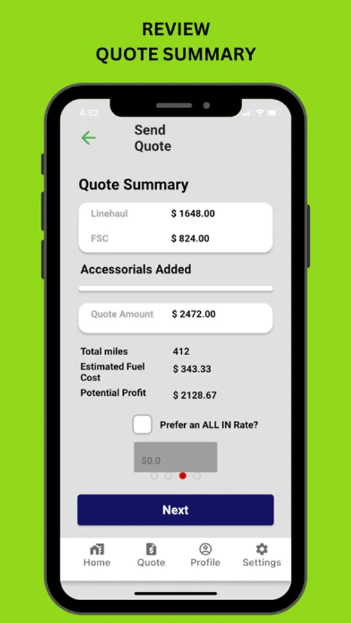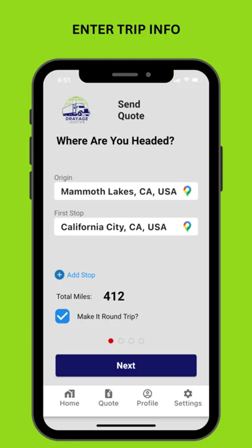 Drayage Quoter will calculate your fuel cost and potential profit based on total miles.