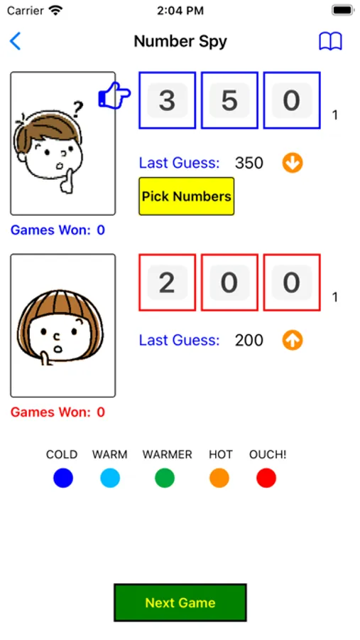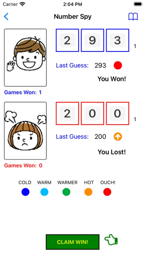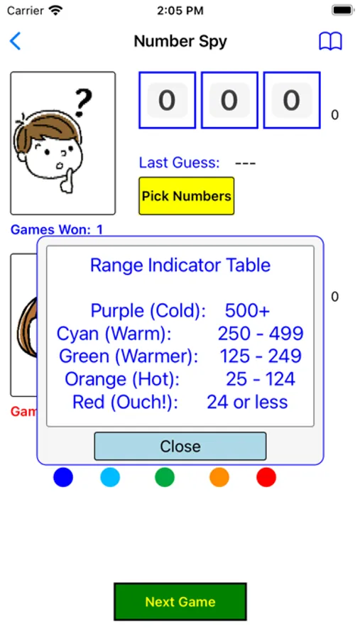 This process continues until a guess matches the Mystery Number. Once a player reaches the "Games To Win Match" mark, the game is over.