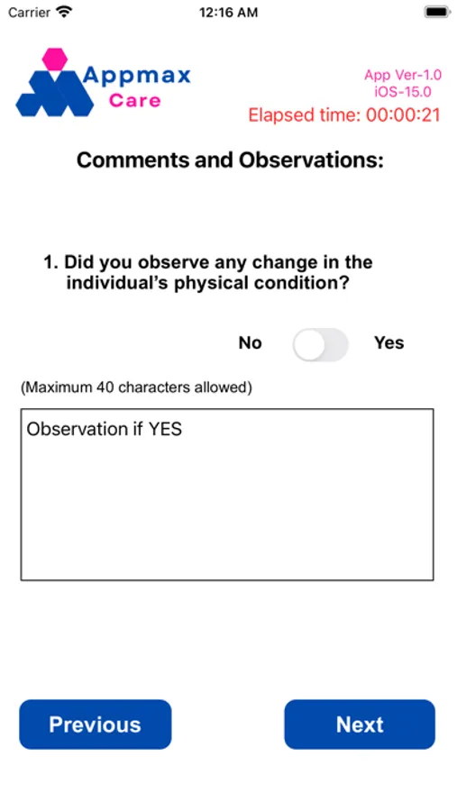 pplication to be used by care provider (aides/PSW) for daily time in and time out, Plan of care ADLs/Task list to be performed by caregivers, Patient details, Secure Messaging between backend admin and caregiver app, Daily and future schedules list, Push notifications from backend admin system, Open shifts/visits offers, Offline mode, GPS and other data points capture for EVV, Various forms such as form 99, 90A, 100 etc.