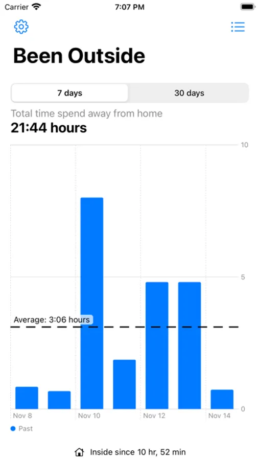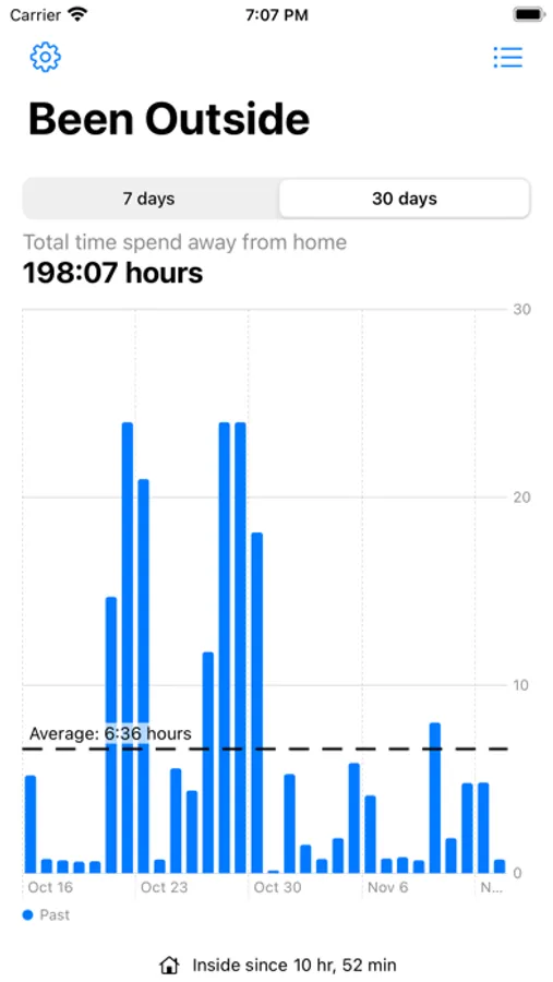 Been Outside tracks how long you are outside.