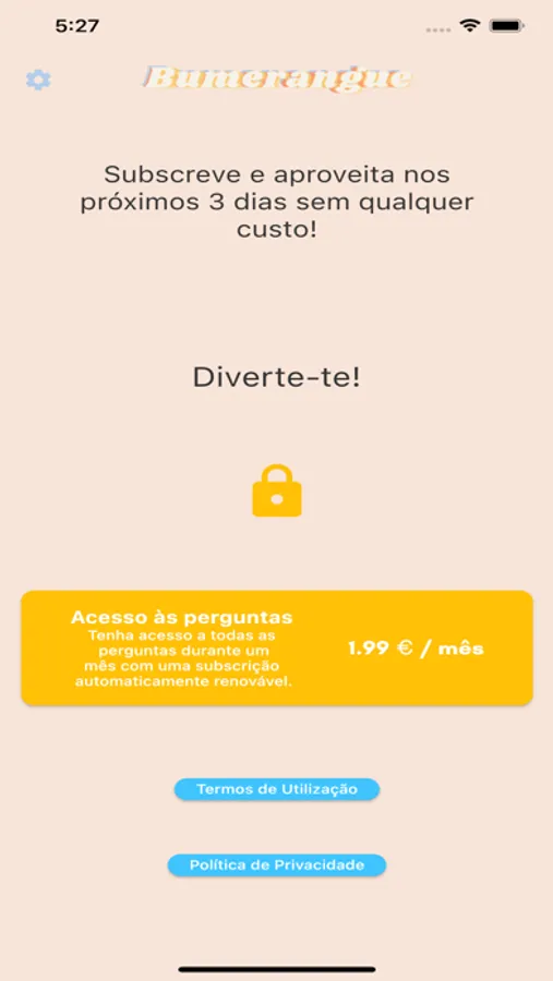 O acesso a estas perguntas é assegurado mediante uma subscrição mensal no valor de 1,99 €, ou seja com duração de 30 dias, sendo automaticamente renovável.