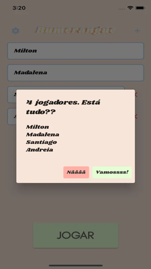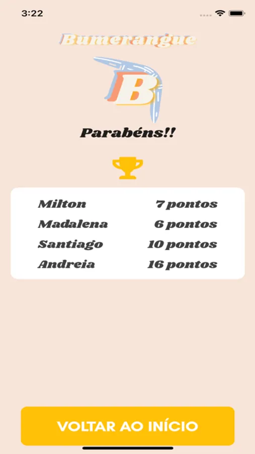 Esta aplicação chama-se Bumerangue e é um jogo que tem como objetivo aproximar as pessoas, sejam amigos ou puros desconhecidos.