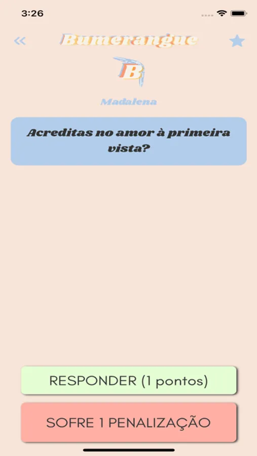 O jogo consiste na realização de perguntas a todo o grupo de pessoas que estiver a jogar, sendo que poderão responder adequadamente ou aceitar uma penalização por não querer responder. Ahhh! A penalização é definida entre o grupo!!