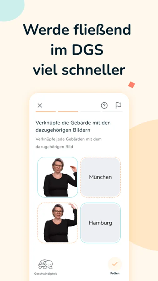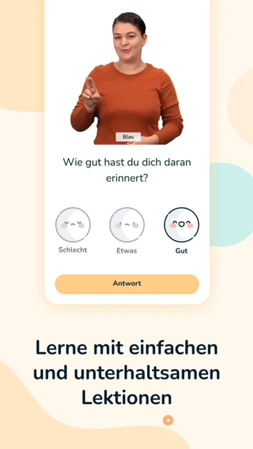 Unser Anspruch ist es, die Art und Weise, wie die Welt Gebärdensprache lernt und darüber denkt, zu verändern. Unser Ziel ist es, eine Brücke zwischen der Gehörlosen- und der Hörendengemeinschaft zu bauen. Die App beinhaltet: