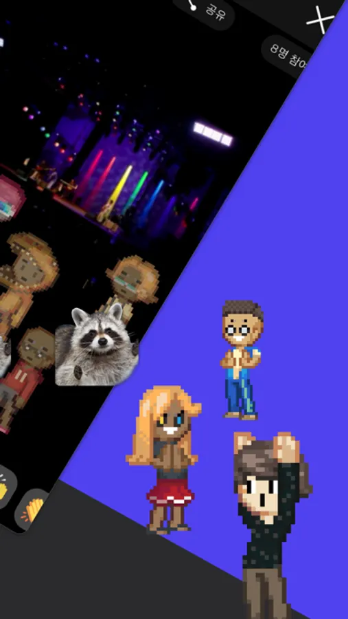 나만의 아바타를 꾸미고 만세, 박수, 이모티콘으로 감정을 표현하고 크리에이터와 소통할 수 있습니다.