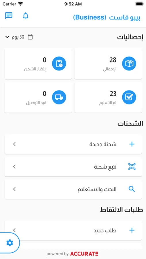 يسمح التطبيق لجميع العملاء في جميع أنحاء الجمهورية بإدارة تسليم واستلام الشحنات باستخدام الهاتف المحمول